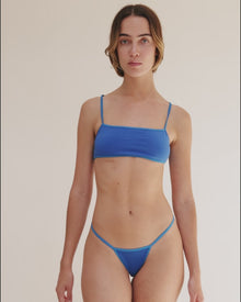 Our FREDDY THONG PANTY (Princess Blue + Brilliant Blue) is made from a super soft and lightweight organic Pima cotton blend (95% organic Pima cotton + 5% spandex). These shades of blue are achieved by using fiber reactive dyes, generating a pretty low impact on the environment. It has top-quality blue elastics.