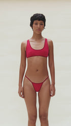 This panty is made from a super soft and lightweight organic Pima cotton blend (95% organic Pima cotton + 5% spandex). This shade of red is achieved by using fiber reactive dyes, generating a pretty low impact on the environment. It has top-quality wine color elastics.